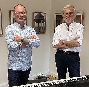 Die Erläuterungen von Herbert Pöhnl werden musikalisch untermalt von Jazz-Pianist Sven Ochsenbauer.